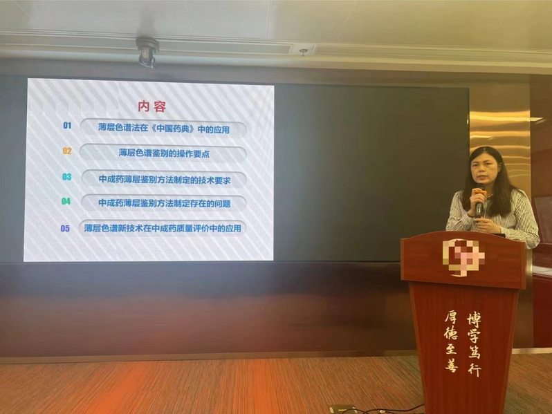 培训课程涵盖理论讲解与实际操作两部分:理论教学中,何轶、林彤、王峥涛以及谷丽华研究员分别从《中国药典》薄层色谱的基本要求、中成药的薄层色谱鉴别与实验操作、薄层色谱技术及其在中药材品质评价与标准中的应用和薄层色谱技术标准操作规范及注意事项等方面开展授课。