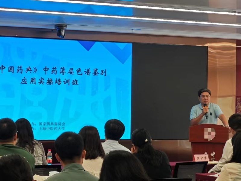 为进一步提升中药检测人员技术水平,加强中药质量控制与标准建设,由国家药典委员会主办,我校协办的《中国药典》中药薄层色谱鉴别应用实操培训班于2024年9月26日至28日在我校中药研究所成功举办。国家药典委员会中药处处长何轶、广州市药品检验所副所长林彤、我校终身教授王峥涛、中药研究所党委书记王广东出席培训班开班仪式,来自全国各地药品检验机构、中药研发企业等共40多名中药检测相关人员参加本次培训。