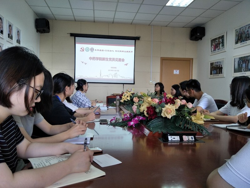 2019年9月19日中午,中药学院研究生党总支委员在10413举行中药学院研究生新生党员见面会暨 “不忘初心、牢记使命”主题教育启动会。党总支书记郑秀棉老师代表总支欢迎13位新生党员加入党总支大家庭。参加此次会议的还有中药学院研究生一支部和二支部的各支部委员。