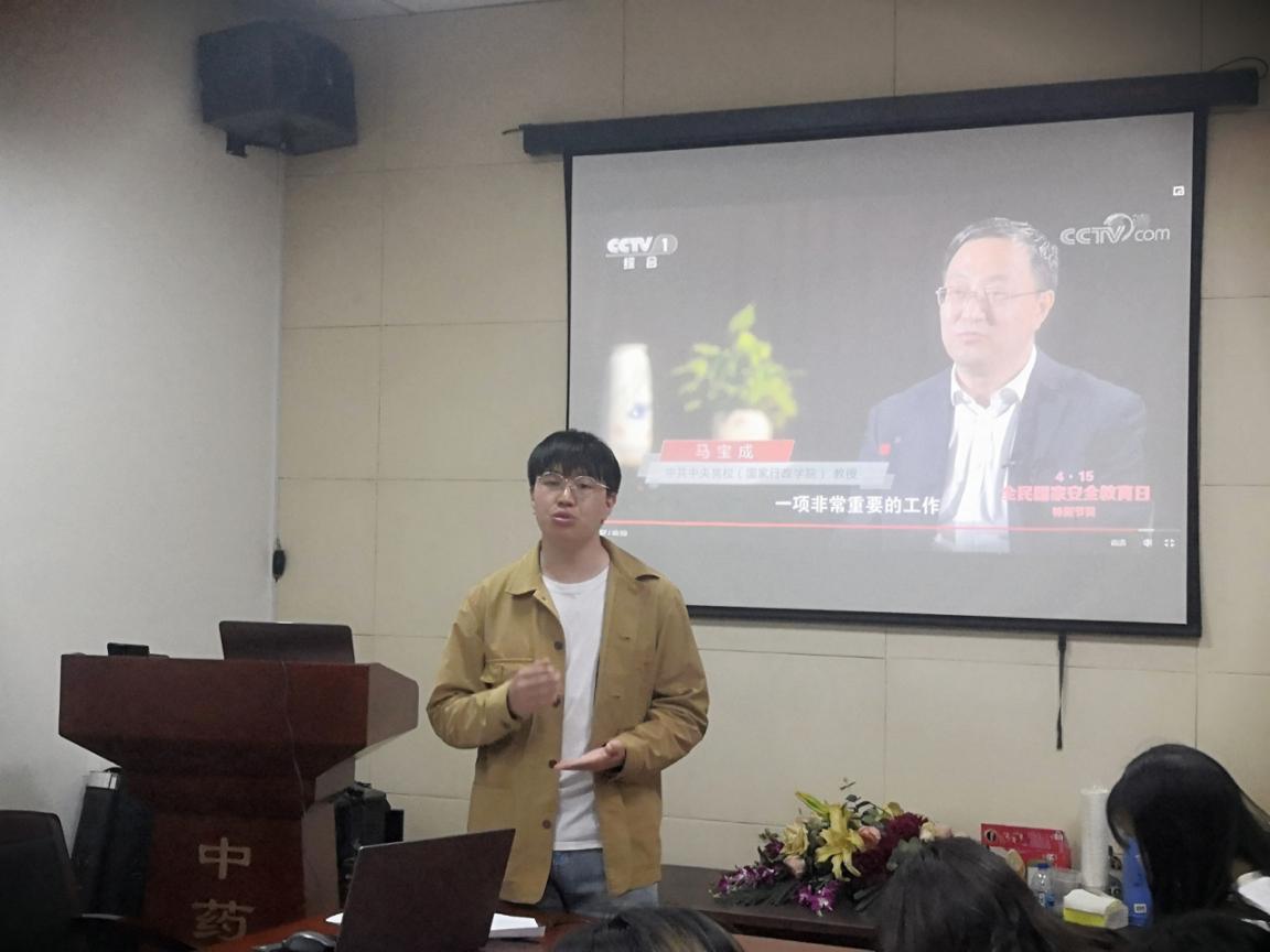 为庆祝建党100周年,贯彻落实习近平总书记关于教育的重要论述和全国教育大会精神,推进教育治理体系和治理能力现代化,中药学院第二学生党支部于4月16日中午在学院办公室10413召开四月组织生活会暨国家安全教育学习活动,会议由支部书记王盼老师主持,辅导员范丽晨老师,夏晴老师及该支部所有党员同学参与了此次会议。会前王盼老师就此次会议的目的及安排做了详细介绍,希望大家认真学习此次会议的条例内容,发挥党员先锋模范带头作用,并了解国家安全教育日设立的目的,增强安全意识。