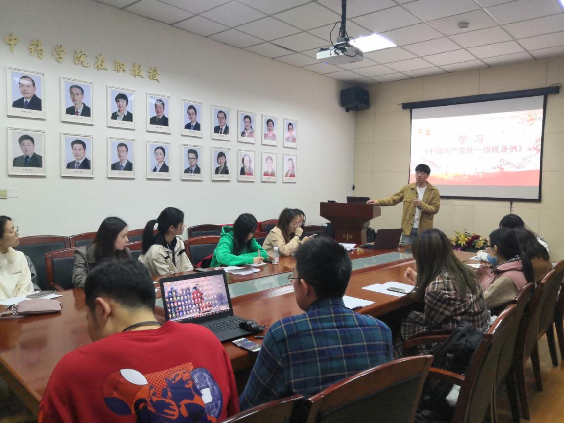 随后,葛巍同志作关于《中国共产党统一战线条例》的学习解读汇报。他就中国共产党对团结党外人士的相关要求进行了介绍,系统介绍了条例内容,并对照组织生活实际有侧重地对条例进行阐释。强调新时代统一战线工作的指导思想和主要任务是以马克思列宁主义、毛泽东思想、邓小平理论、“三个代表”重要思想、科学发展观、习近平新时代中国特色社会主义思想为指导,坚定不移走中国特色社会主义道路,为保持香港澳门长期繁荣稳定、实现祖国完全统一服务。