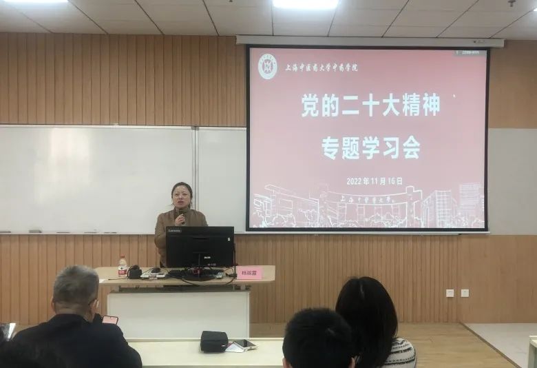 为深入学习宣传贯彻党的二十大精神,深刻理解把握精神实质和核心要义,汲取奋进力量,11月16日下午,中药学院党委邀请我校“杏马”理论宣讲团、马克思主义学院副教授杨丽霞在10105为师生作党的二十大精神专题辅导报告。学院领导班子、全体党员和教师参加本次学习,会议由中药学院党委书记沈岚主持。
