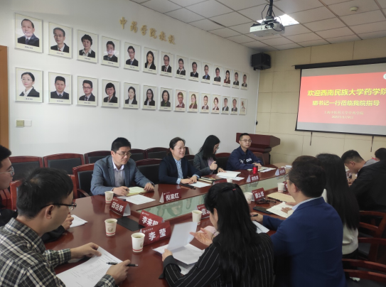 沈岚致欢迎辞,并对学院基本情况、发展现状和建设成效进行了介绍。随后,娜么塔介绍了西南民族大学药学院情况,目前该院有中药学、中药学(彝药)、藏药学、药学、制药工程、药物制剂等 6个专业,在读本科生 1000 余人。随后在交流过程中,双方结合各自办学情况与特色,特别是在党建引领下的学院高质量发展进行深入探讨,对党建与中心工作深度融合的路径、举措、方法与评价等问题进一步交流,涉及内容包括专业改革、科研及学科建设、师资队任建设、野外见习基地、实践教学平台建设、学生培养及就业等方面,现场气氛热烈。双方希望在今后继续加强交流学习,共同提高,促进两院的共同发展。