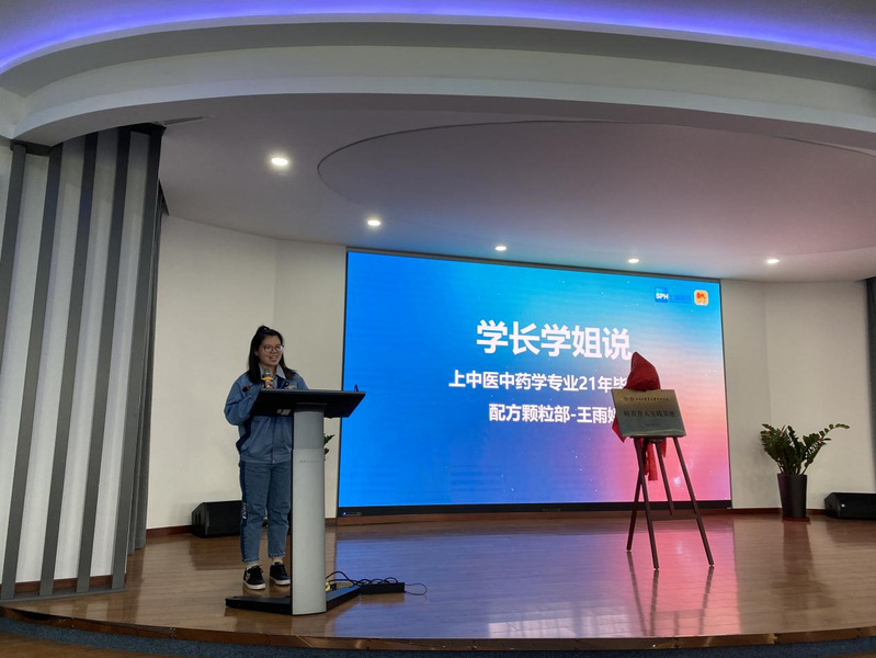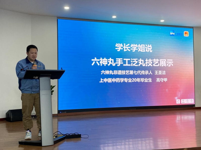 随后,上海雷允上药业有限公司副总经理李琦与中药学院党委书记沈岚共同为上海雷允上药业有限公司岐黄育人实践基地揭牌,推动了校企合作迈上新台阶。16级中药学毕业生高守甲、17级中药学毕业生王雨婷、18级中药学毕业生黄邦路进行“学长学姐说”分享,分享了入职上海雷允上药业有限公司后的个人成长与发展,对学校及公司的培养表示感谢,后期也将秉持初心继续在岗位上用心做好各项工作。六神丸非遗技艺第七代传承人王圣洁老师为中药创新班师生进行现场手工泛丸展示,将制药人的匠心与中医药文化的传承与创新通过一粒粒药丸传递给师生。