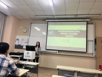 为贯彻和落实教育部实验室安全管理相关文件要求,配合落实学校实验室安全工作整体部署,提升中药学院实验室安全管理水平,切实保障全体师生人身安全,2023年11月08日下午中药学院开展了实验室危化品和特种设备(压力容器)安全培训会,本次培训特邀校保卫处安全生产办公室主任、中药学院交流干部张若愚老师主讲。会议由中药学副院长胡凯莉主持。