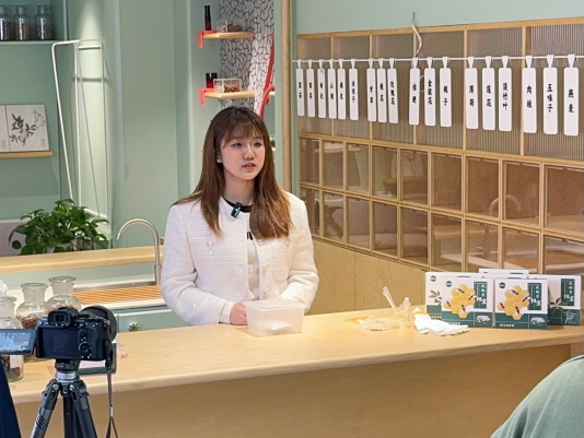 4月13日,我院党委副书记陆婧、辅导员张瑞玉带领我院赵若绮、何宇翔、周颖轩、蔡静四名同学一行来到上海相宜本草化妆品股份有限公司进行“华夏本草说”视频课堂3.0拍摄,本次由4名同学共同担任拍摄《点燃绽放千年的东方之美——茶花香薰烛》、《一颗香丸通古今——古法香丸》、《滋润相宜——DIY润唇膏》、《洁净相宜——无患子洗涤剂》,通过了解山茶花的医疗、美容功效;了解和香文化、辨识和香常用中草药的相关知识;了解蜂蜜的古法治疗以及无患子的功效作用等,现场体验自制生活用品的乐趣,让学生们从课堂走向实践,让中医药文化与美育、劳育深度融合,启智润心、深耕厚植、落地生根。