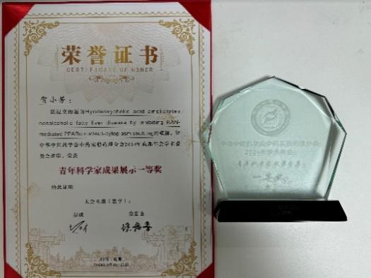值得一提的是,我院李后开研究员指导的博士研究生贺小芳同学以“猪去氧胆酸靶向肝脏PPARα穿梭改善MAFLD机制研究”为题进行了青年科学家汇报,凭借出色的表现,荣获大会“青年科学家成果展示一等奖”,并作为青年科学家代表进行成果展示。