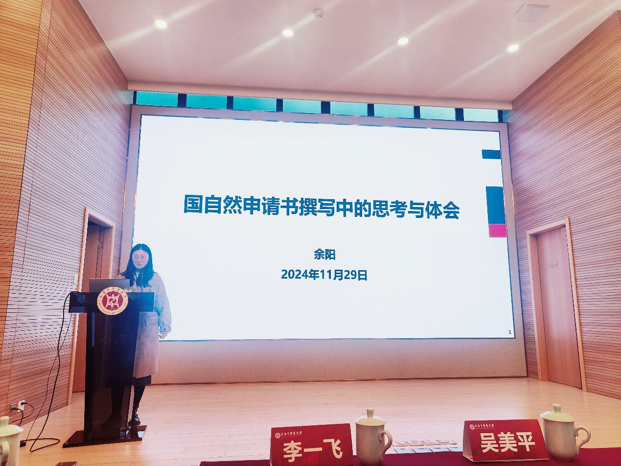 在经验交流分享环节,学院上一年度获得国自然项目资助的老师逐一为大家带来申报经验和心得分享。张永太老师从“中药纳米制剂研究选题策略”出发,分享了他在国家自然科学基金选题方面的独到见解;张莉老师结合自身申报经验分享了“基础与创新在国自然申报中的双轮驱动”,强调了个人研究基础与创新思维结合在成功获得资助方面的重要作用;慈天元老师则以“国自然申报心得交流-以‘申报口’的选择为例”为题,分享了切实可行的申请代码的选择技巧;郭夫江老师以“申请案例分享-以温郁金项目申请为例”为主题,详细讲述了自己的申报过程中和心得体会;李园园老师以“国自然之小确幸”为题,从小白标书失败之路、本子的“打磨”与思考、小创新“锦上添花”三个方面分享了她在申报国家自然科学基金过程中的点滴幸福和感悟;余阳老师则从“国自然申请书撰写中的思考与体会”出发,提供了切实可用的撰写申请书技巧;刘梦璠老师则以“正确的赛道+努力+坚持=成功”为题,分享在申报国自然的过程中,要端正态度,选择正确的方向,坚持不懈地努力。