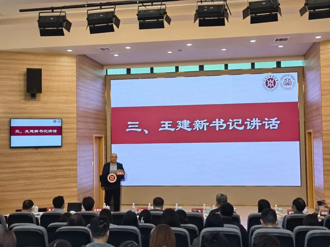 复旦大学药学院党委书记王建新进行了讲话。他指出两院交流由来已久,希望通过双方共建,利用已有的学科和综合优势,不断推动双方向更高水平、更深层次、更高质量发展。