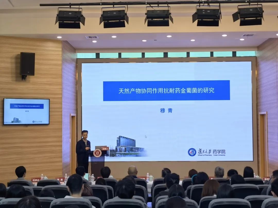 紧接着,围绕“新质生产力引领中医药高质量发展”这一主题,复旦大学药学院教授穆青、青年研究员刘泽众、博士生郭林峰,我院研究员盛丽莉、讲师黎哲、博士研究生阮航共6名师生党员,分别就中草药协同抗细菌耐药、基于免疫增强技术的广谱冠状病毒疫苗广谱冠状病毒疫苗、肠道菌介导的胆汁酸代谢对宿主健康的作用、细胞膜仿生纳米技术在中药抗肿瘤靶向递送系统中的应用、大黄调控肠-肺轴中屏障损伤促进宣白承气汤防治重症病毒性肺炎的整合作用机制以及新型驱动式微针共载地塞米松/丹皮酚MOF治疗变应性鼻炎等领域的研究进行了学术报告。