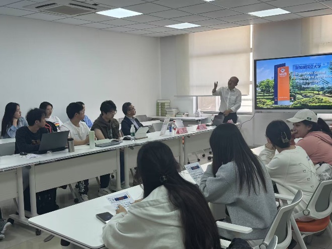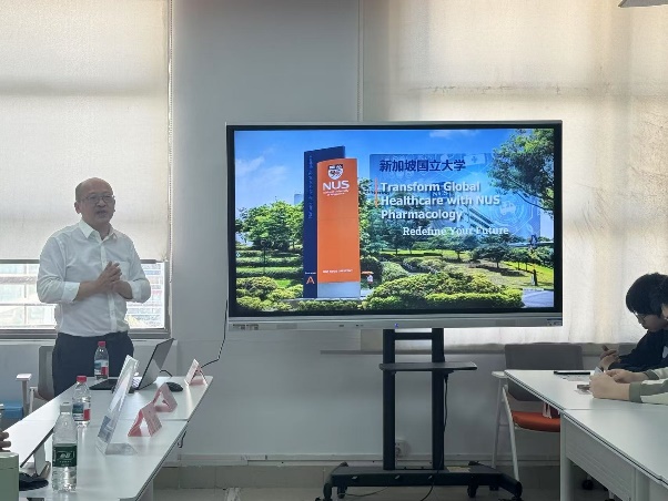为提升我院学生国际视野,培养守正创新、中西融通的复合型药学人才,帮助学生更好地适应就业形势的变化,满足学生多元化的升学需求,2025年3月26日,我院邀请新加坡国立大学(NUS)药理系为我院学生开展出国留学讲座,为有留学意向的同学提供专业化、有针对性的指导,介绍解读其医学药理学硕士(MSc in Medical Pharmacology)的培养逻辑与职业发展支持。这一项目旨在培养学生在药理学、毒理学、监管科学及药理学教育领域的专业能力,以药理学创新,驱动未来医学发展。讲座由新加坡国立大学(NUS)药理系前系主任、PI Prof. Fred Wong,硕士研究生项目招生办主任(中国区)Associate Prof. Lingzhi Wang,硕士研究生助理专员Ms Lu Fan主讲,我院院长张彤、党委副书记陆婧、副院长郑昌武出席。