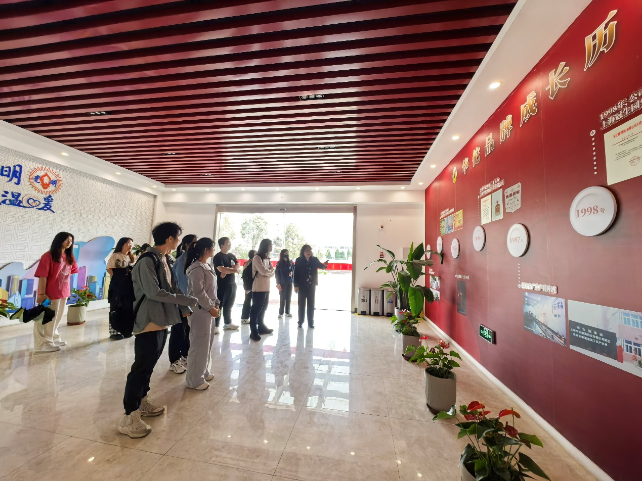 2025年4月9日,我院闪药导师团2022级药学专业学生在后勤保障处处长、《药事管理学》课程主讲老师陈怡和我院党委副书记陆婧的带领下,赴上海冠生园华佗酒业有限公司开展实践教学活动,零距离感受传统企业对生产标准化与质量精控的极致追求。我院91级院友、公司副总经理周爽全程带教。