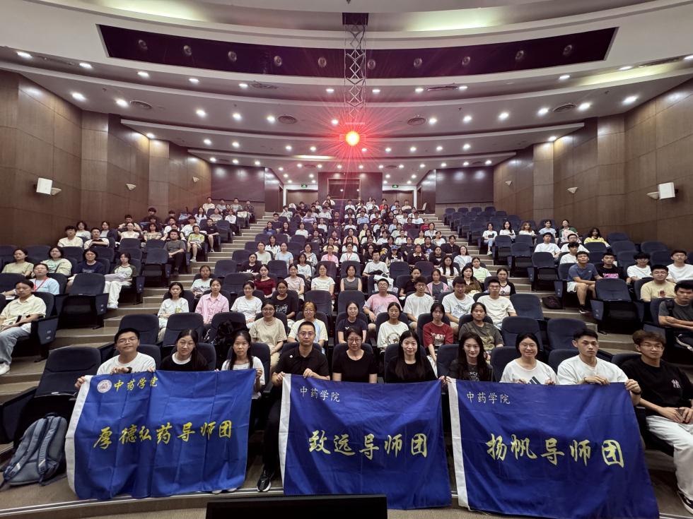 2025年9月10日下午,我院党委书记车荣华以“高举信仰旗帜,传承岐黄薪火”为题,为2025级中药学、中药学(创新班)及药学(中外合作)专业新生讲授了意义深远的“书记第一课”。讲座聚焦中医药传承与创新,由我院党委副书记陆婧主持,全体新生共同开启与中医药学科的“双向奔赴”之旅。