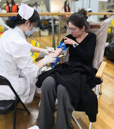 为保障活动顺利开展,我院师生齐心协作。辅导员和志愿者们早早来到现场,精心布置等候区域,备好红糖水、慰问品等物资,确保每个环节如中药配伍般精准有序。一句“放轻松,先喝点温水”,一杯暖意融融的红枣茶,一块及时补充能量的巧克力,都在细节中传递着师生之间亲人般的关怀与温暖。