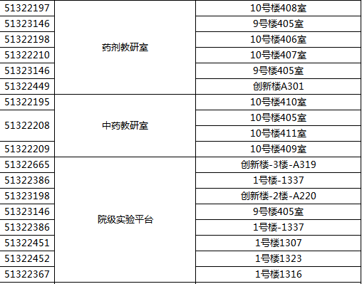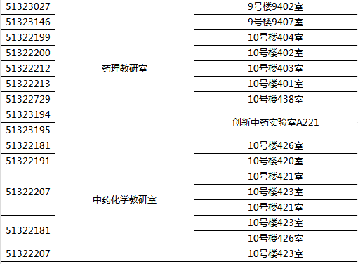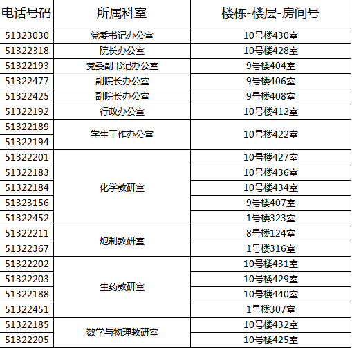 中药学院院内电话一览